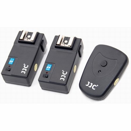 The JJC Flash Trigger Set for two flashguns is ideal for mounting hot shoe flashes onto light stands. Standard shoe mount flash units can be mounted directly onto the integral hot shoe, which also provides the triggering power to the flash. Studio strobes may be fired from the PC Sync terminal on the side of the receiver. Four channels provide enough isolation from most other radio frequencies and enable you to work on a ""closed"" system.